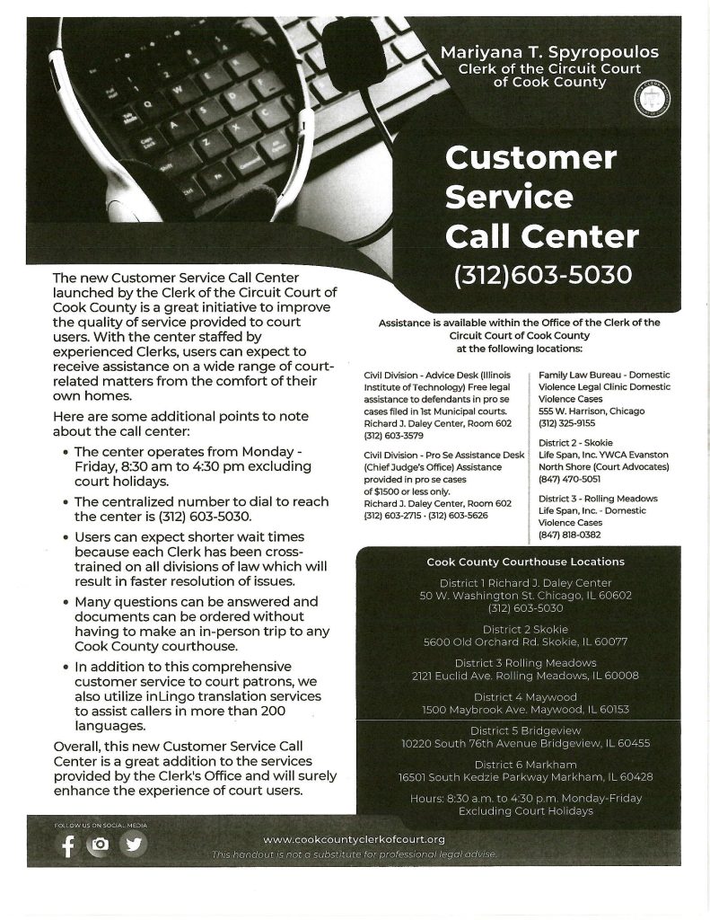 - Cabrini Green Legal Aid (CGLA) – (312) 738‑2452; 6 S Clark St, Ste 200; adult Expungement Help Desk at Daley Center (Room 1006) and Markham Courthouse (Room 102J). [17][8]