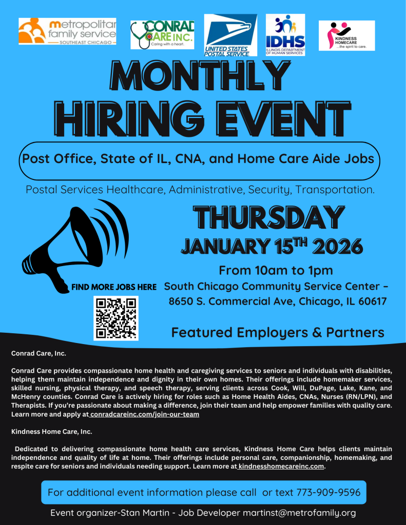 Join us for an Illinois Department of Human Services (IDHS) Hiring Event and explore rewarding careers in public service! IDHS offers diverse opportunities in social services, healthcare, mental health, administration, and more, with competitive benefits and career growth. Positions include Mental Health Technician Trainee, Security Therapy Aide Trainee, Social Services Career Trainee, nurses, and other rolesβmany entry-level with no degree required. Learn about the application process, meet recruiters, and get support to start your career. Visit https://www.dhs.state.il.us/ for details and upcoming events.