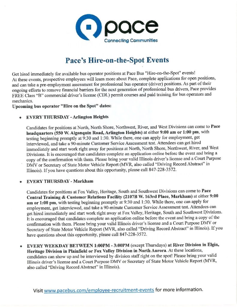 Pace Suburban Bus: Hiring on the Spot Events – Your Path to Becoming a Bus Operator